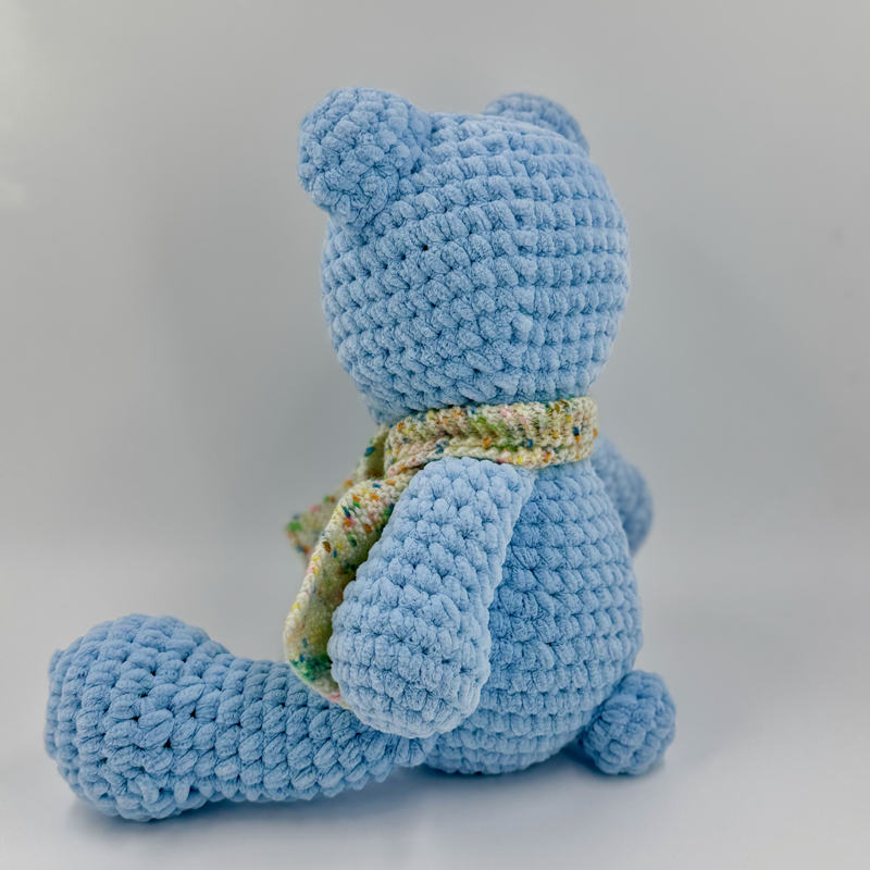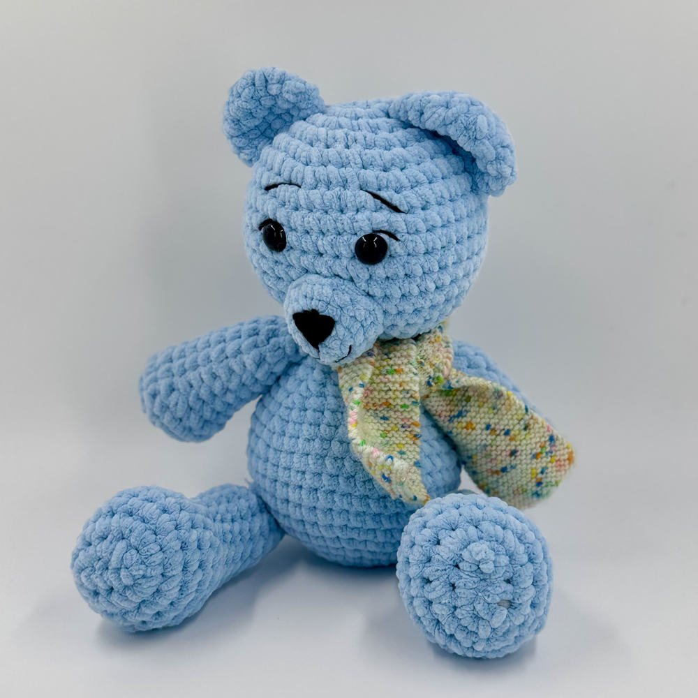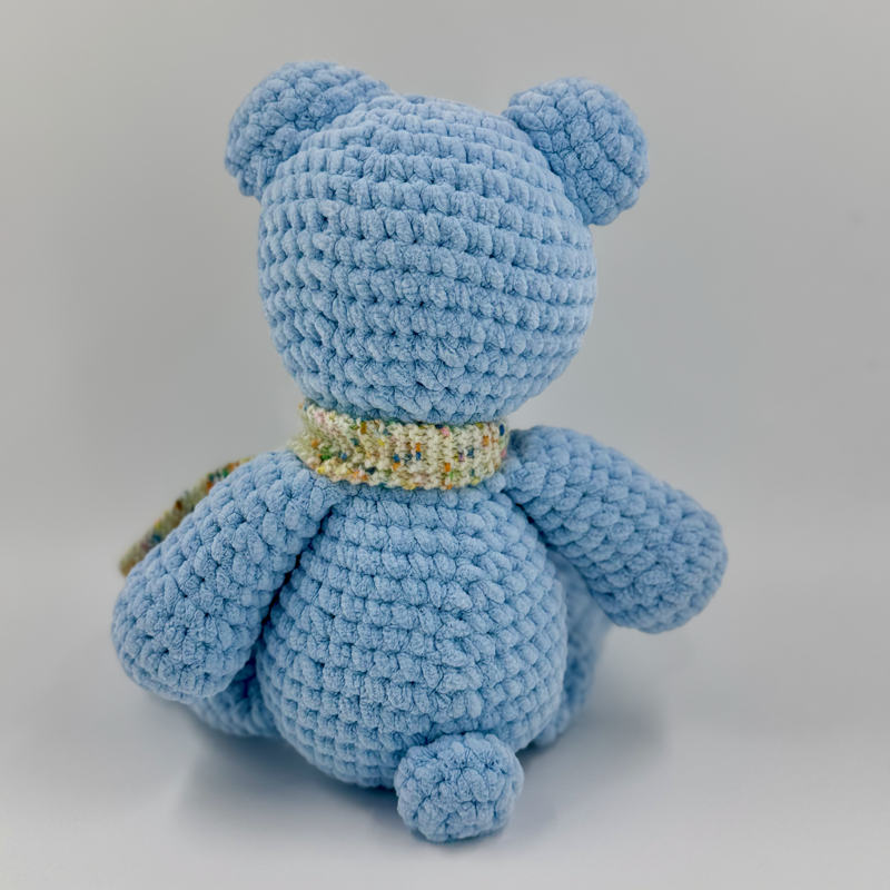 Barnabé incarne le réconfort pur. Son coloris bleu clair et sa texture chenille ultra-moelleuse en font un objet de décoration poétique et apaisant. Chaque maille est crochetée avec soin pour garantir une pièce durable et unique.