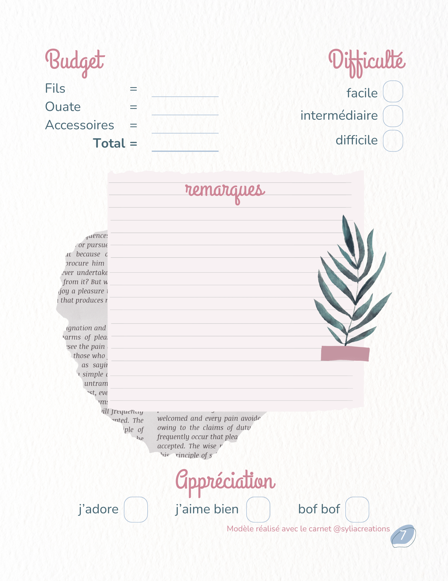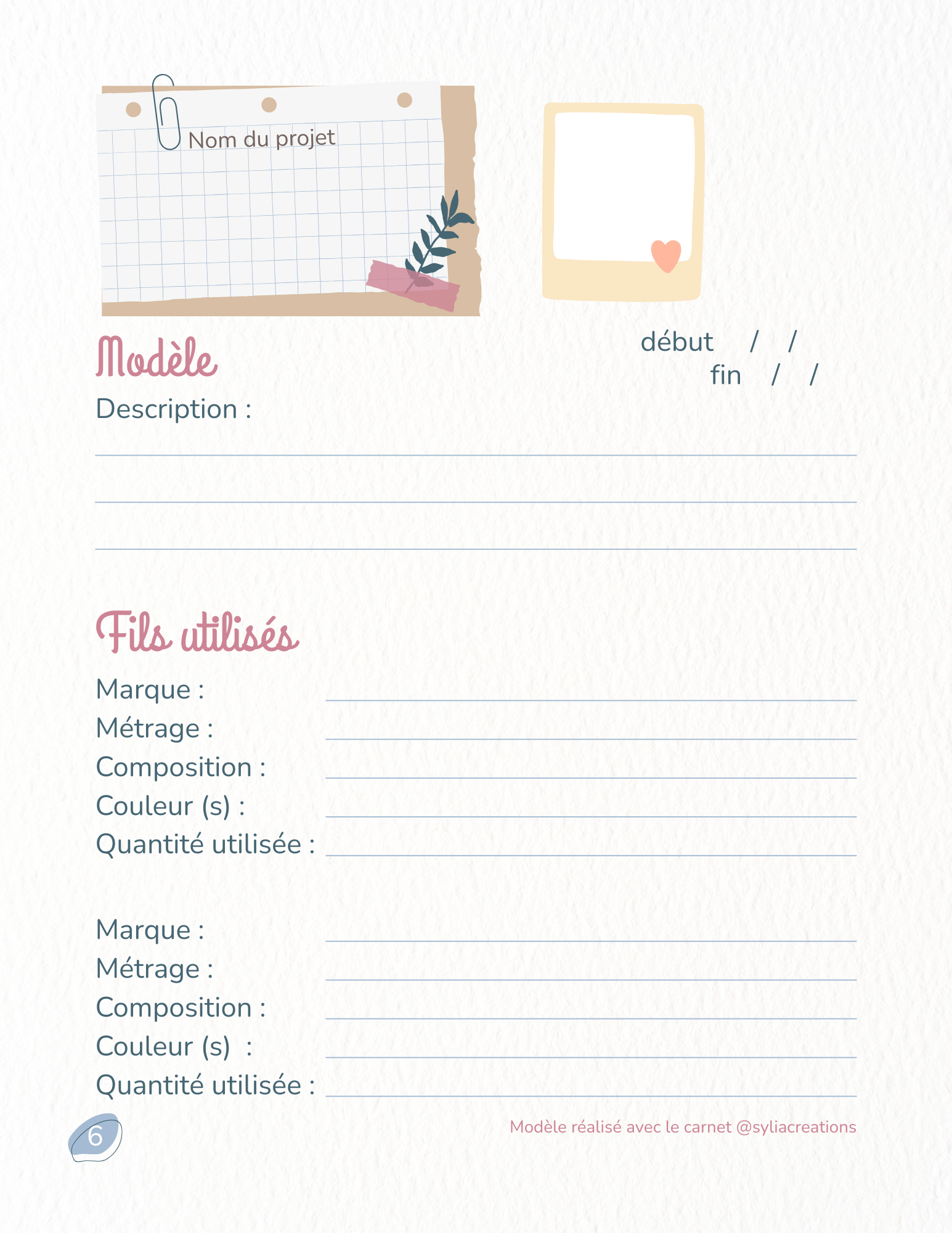 20 fiches projets doubles : Pour noter vos modèles, fils, temps passé, budget et astuces.