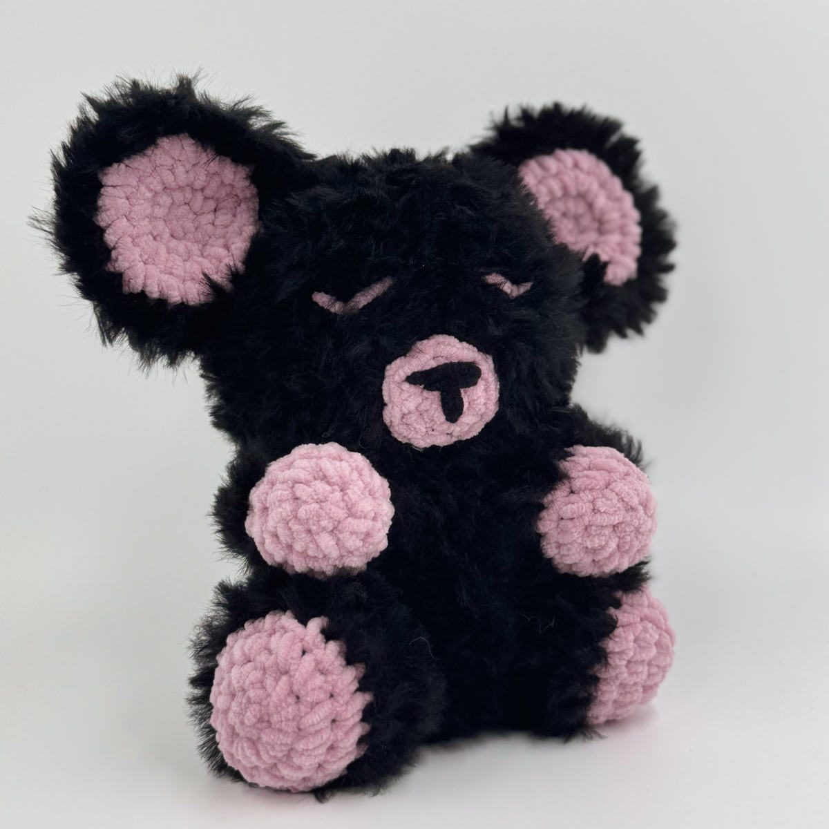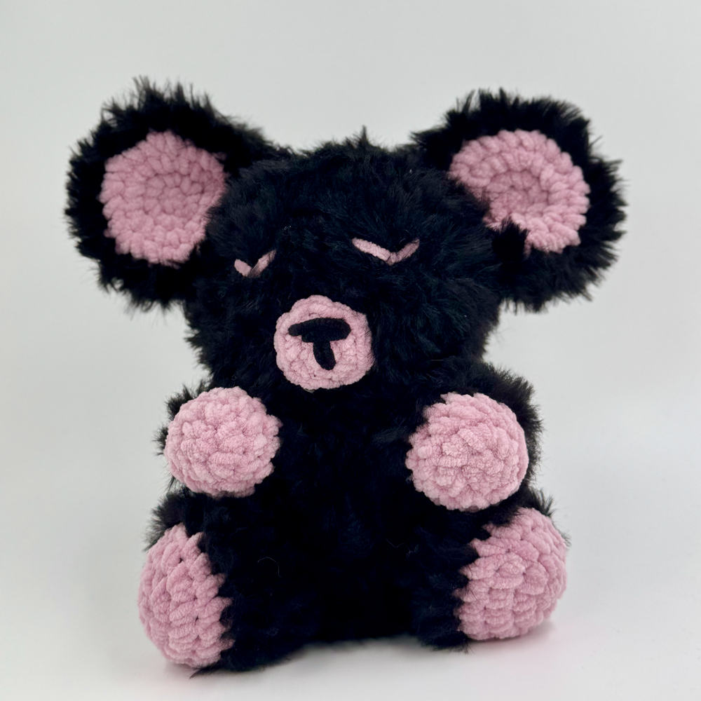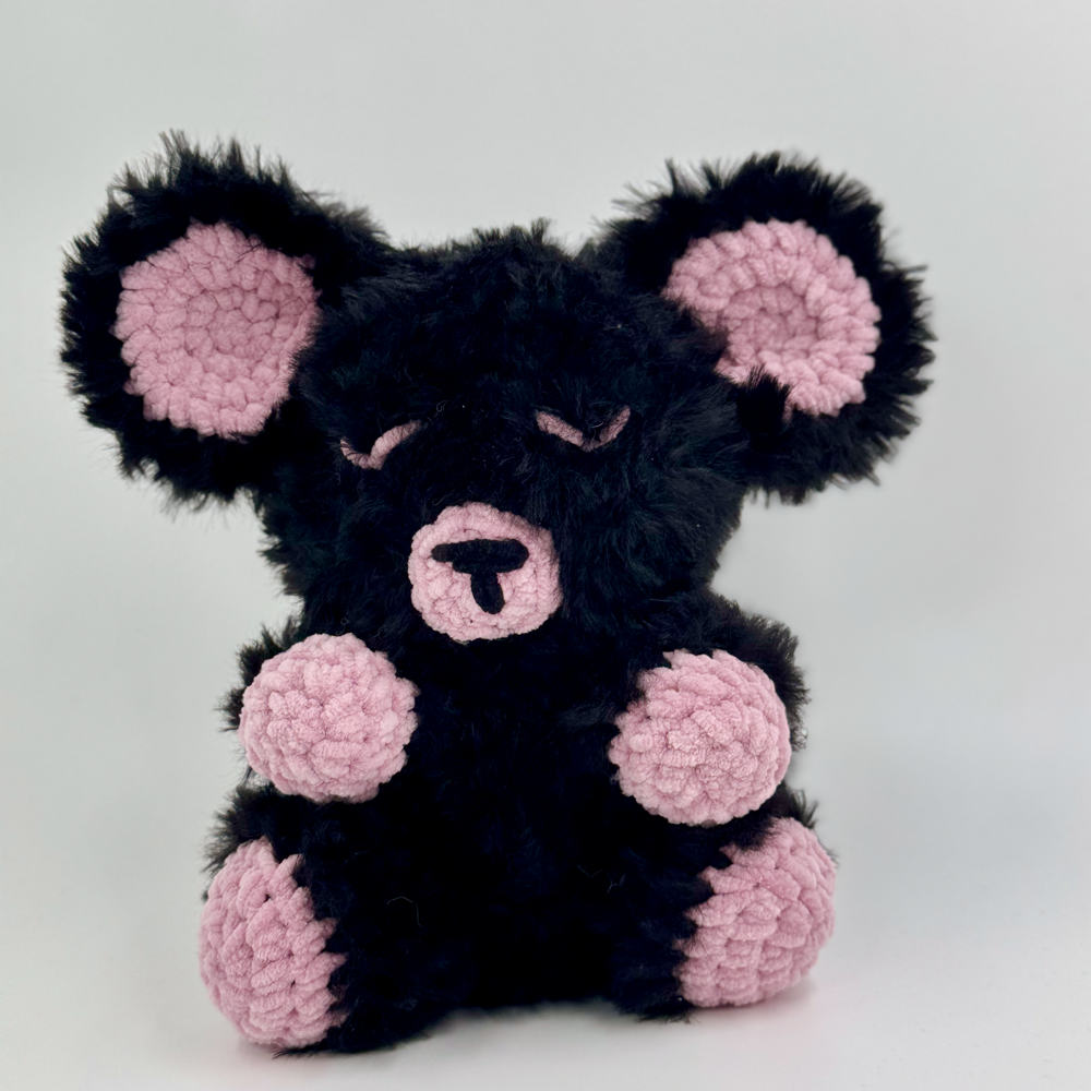 Plongez dans un univers de tendresse avec Réglisse, un ours amigurumi qui joue sur les contrastes de couleurs et de matières.