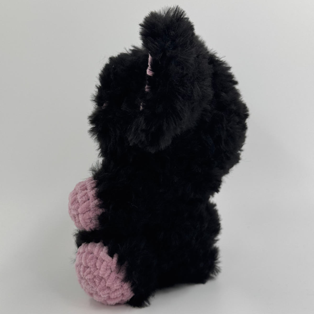 Le secret de son incroyable douceur ? L’utilisation de la laine Inuit de Phildar, qui lui donne cet aspect légèrement poilu et vaporeux. Ses pattes et ses oreilles contrastent avec une touche de rose réalisée en fil Toucan de Hobbii, offrant un aspect velouté et dense.